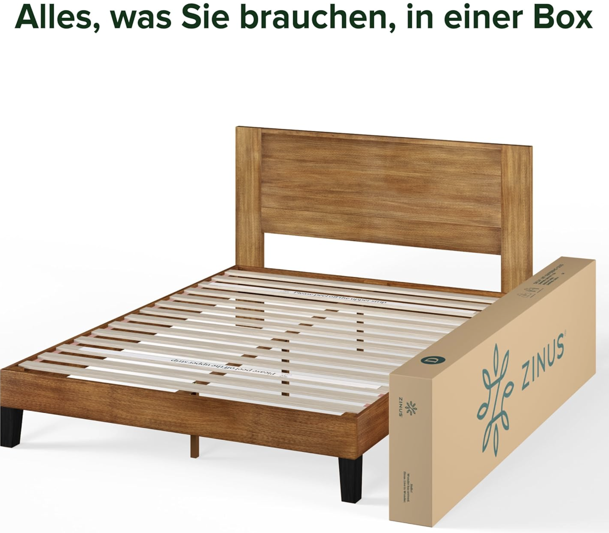 Zinus Tonja Bett 90×200 cm – Höhe 30 cm – Holzpritschenbettrahmen mit Kopfteil – Braun