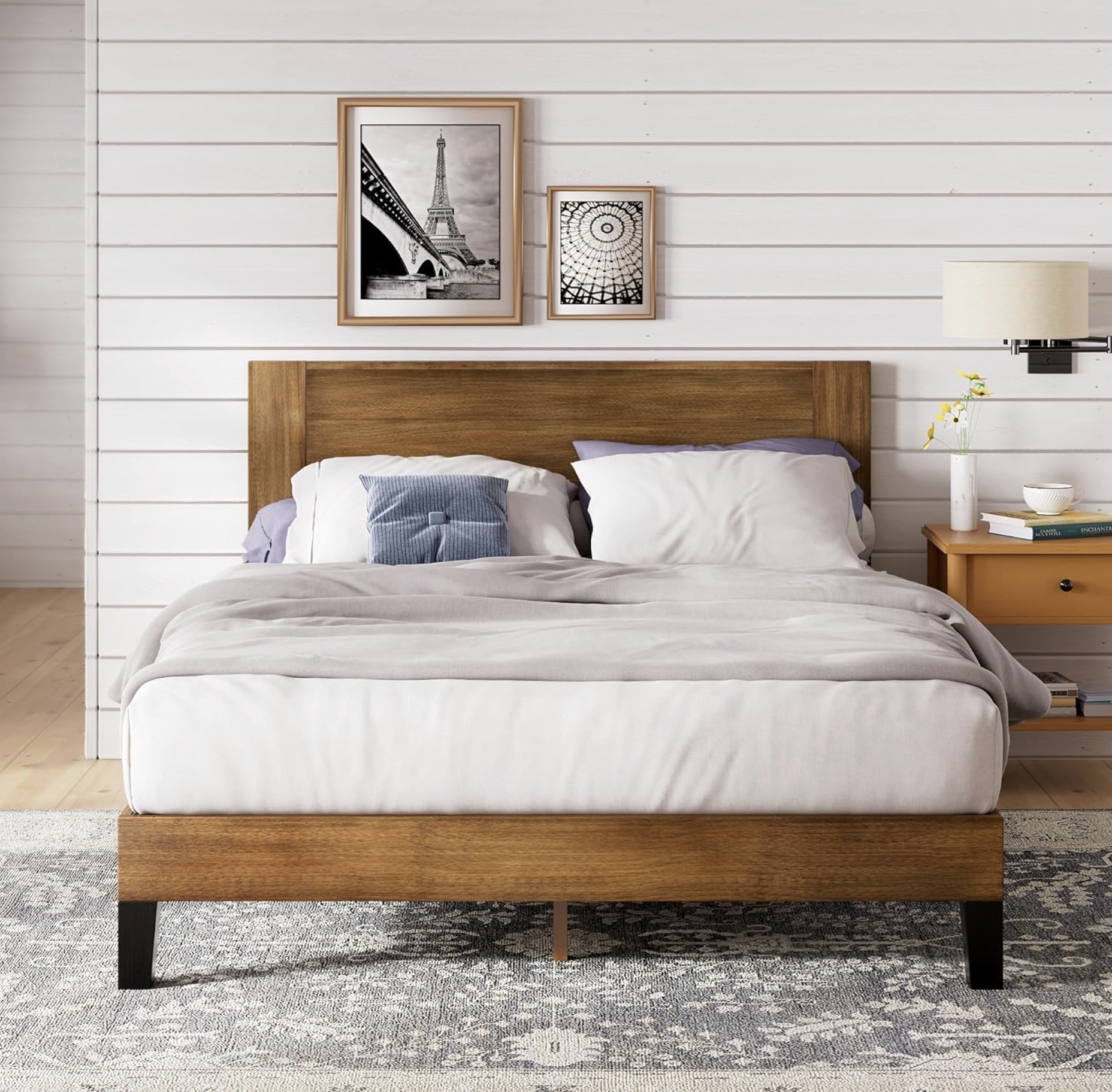Erneuern Sie Ihr Schlafzimmer mit diesem Tonja Holzbettgestell von Zinus. Kopfteil und Rahmen sind aus Holz gefertigt und haben einen inneren Rahmen aus Metall. Apropos Stütze: Der Massivholzrahmen hält Ihre Matratze dank zuverlässiger Holzlatten problemlos. Alle Werkzeuge, Teile und Anleitungen, die Sie benötigen, werden in einem Karton verpackt und direkt zu Ihnen nach Hause geliefert, damit Sie es ganz einfach zusammenbauen können.  Kurz gesagt, dieses Bett hat eine hochwertige Verarbeitung, die Sie lieben werden und auf die Sie sich jahrelang verlassen können, ohne dass Sie dabei Ihr Budget sprengen müssen.